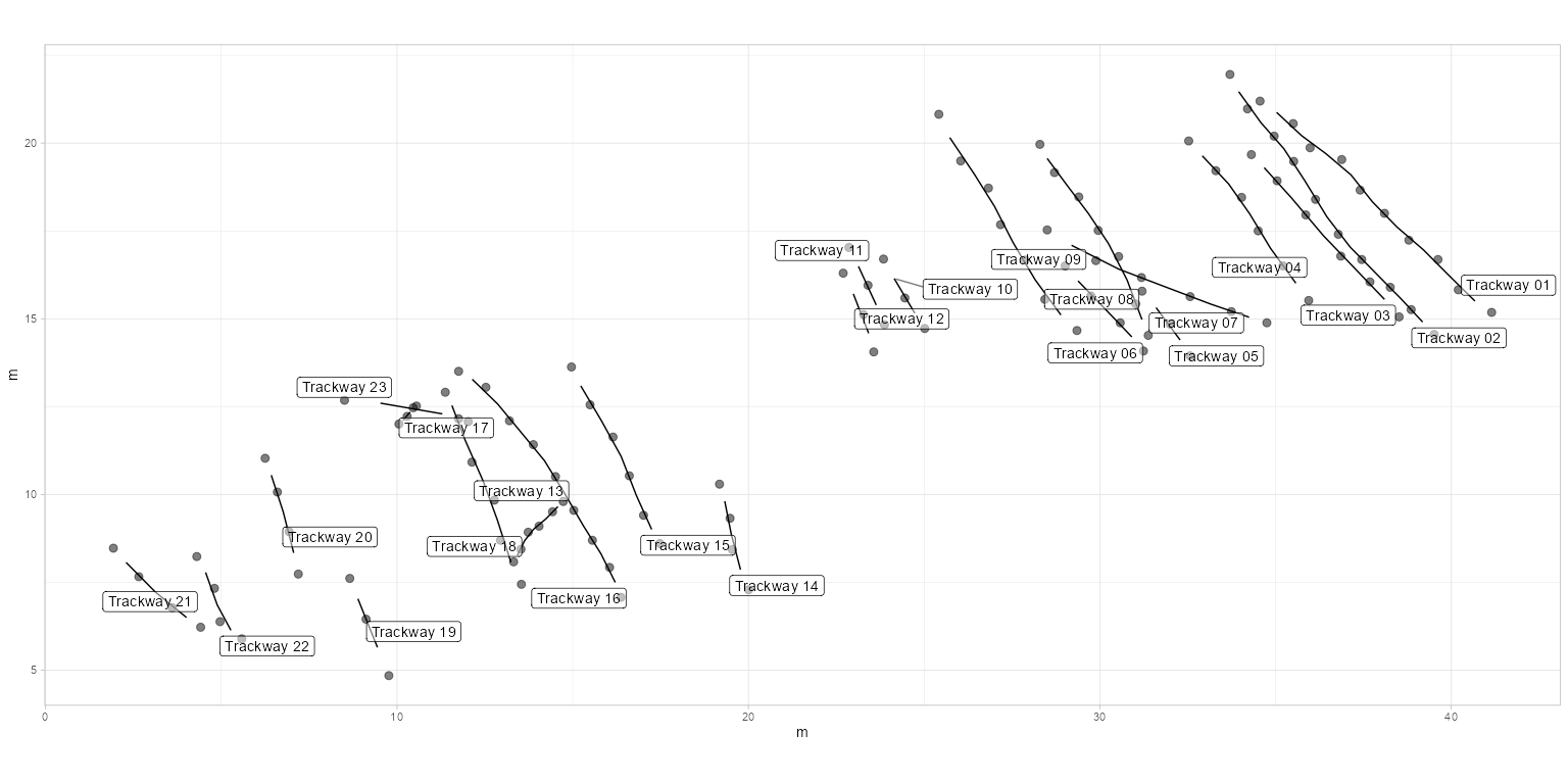 #> Warning in plot_track(PaluxyRiver, plot.labels = TRUE): Warning: 'plot.labels'