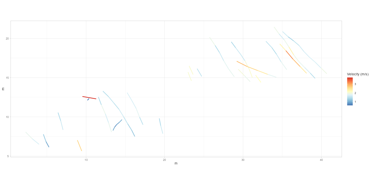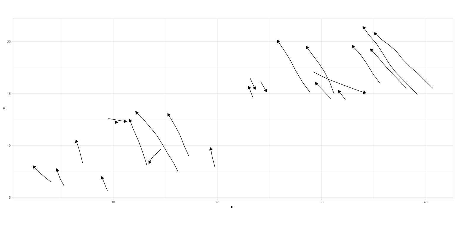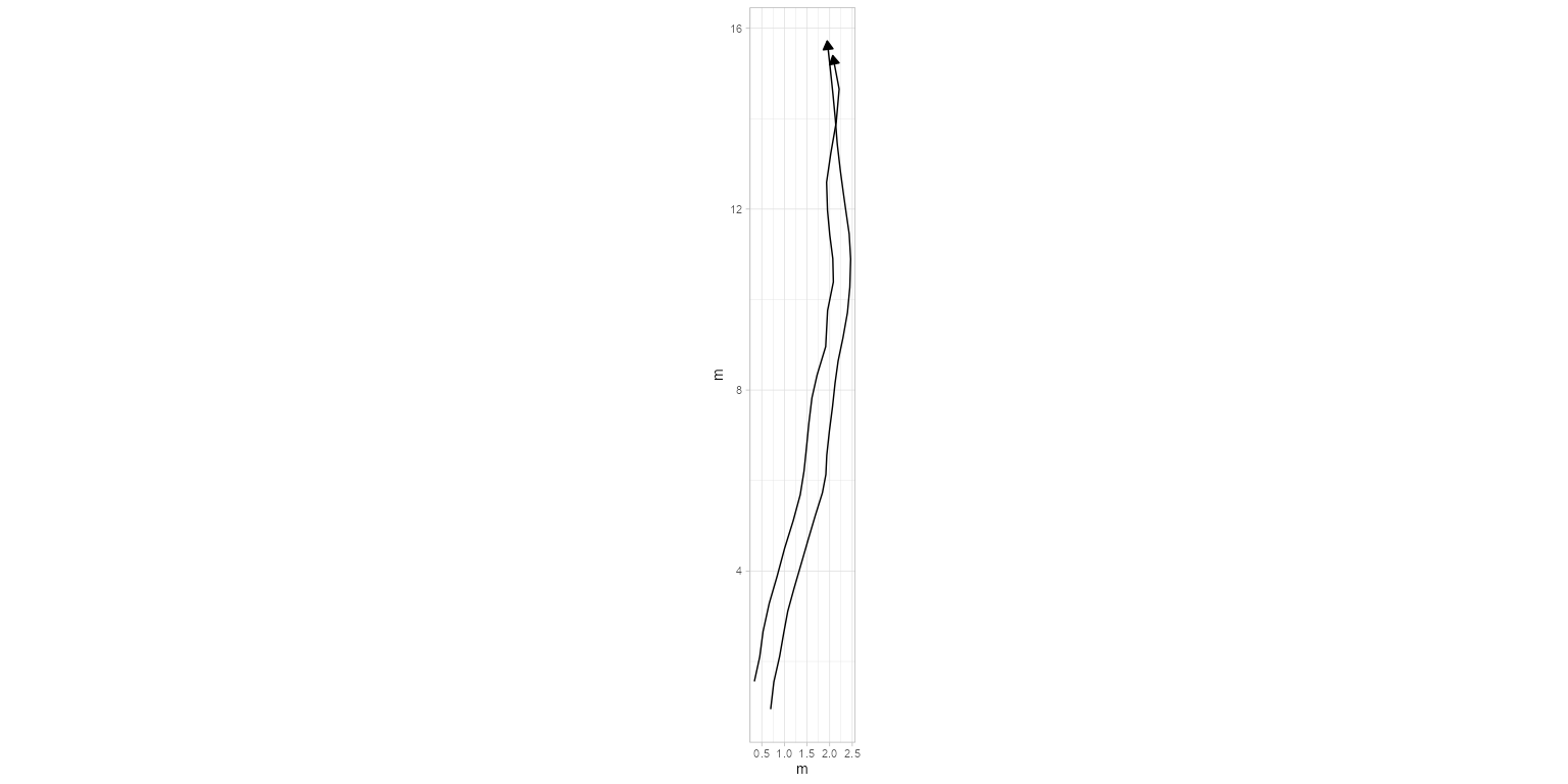 plot_track(PaluxyRiver, plot = "Trajectories", arrow.t = TRUE, arrow.size = 0.1)